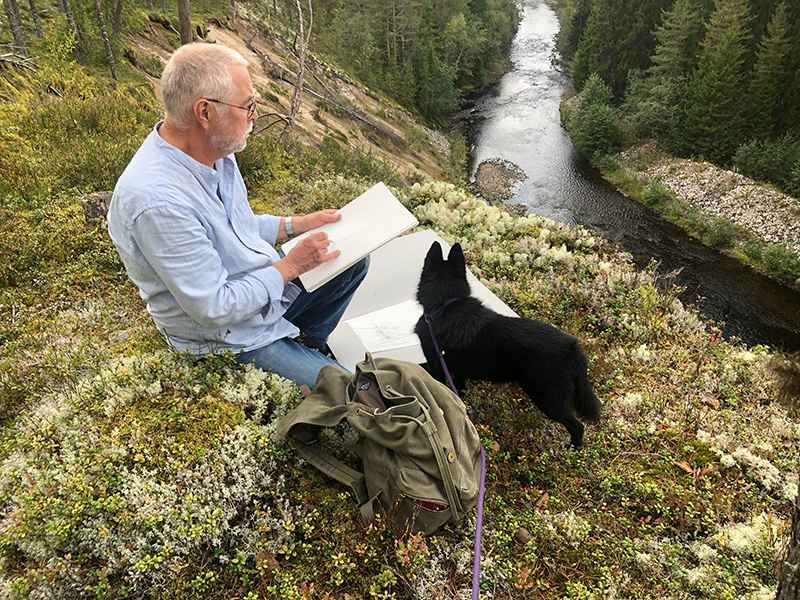 Ah, Noorwegen. Nog nooit eerder geweest. Ik ben niet echt een reiziger. Maar nu had ik de kans om een hele maand in een residentie te werken: Natthagen , zo’n 200 kilometer boven Oslo, iets naar het oosten, vlakbij Rena. Het begin van de Taiga. Van daaruit kun je naar het oosten door het bos blijven lopen tot in Siberië.