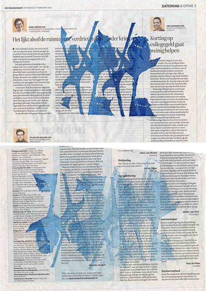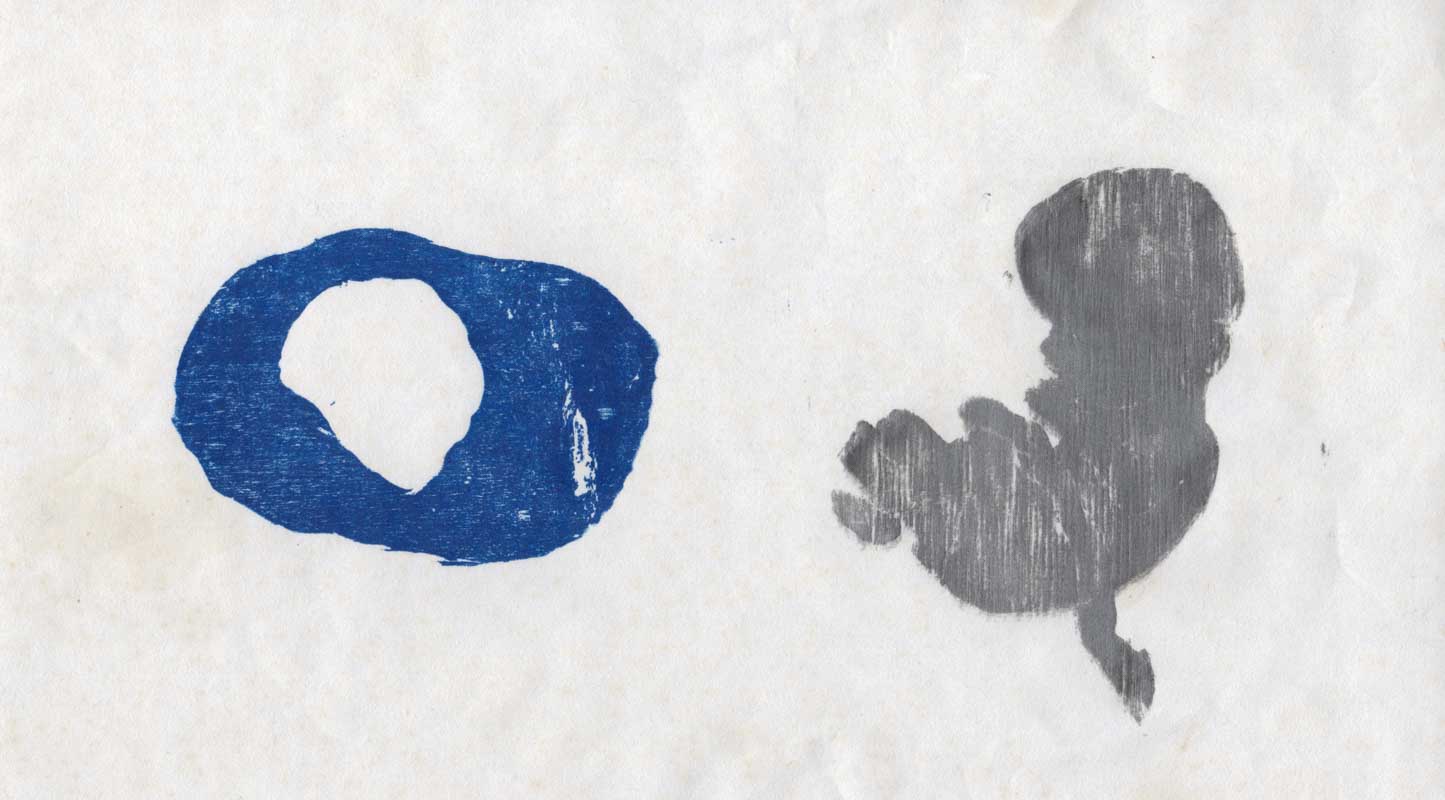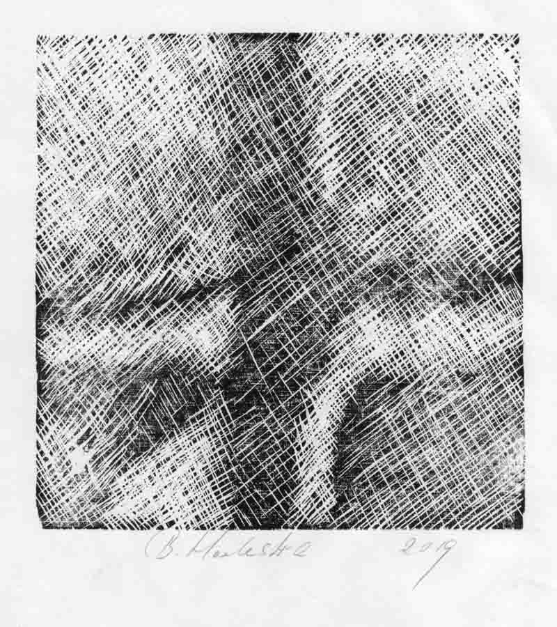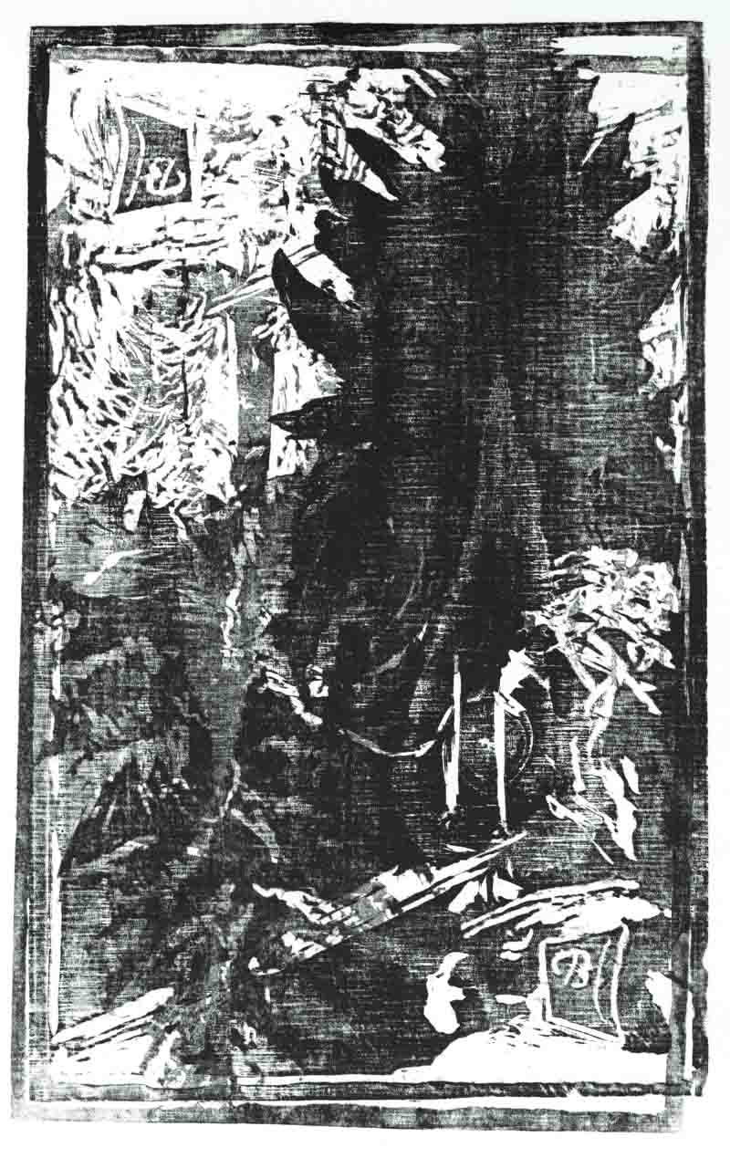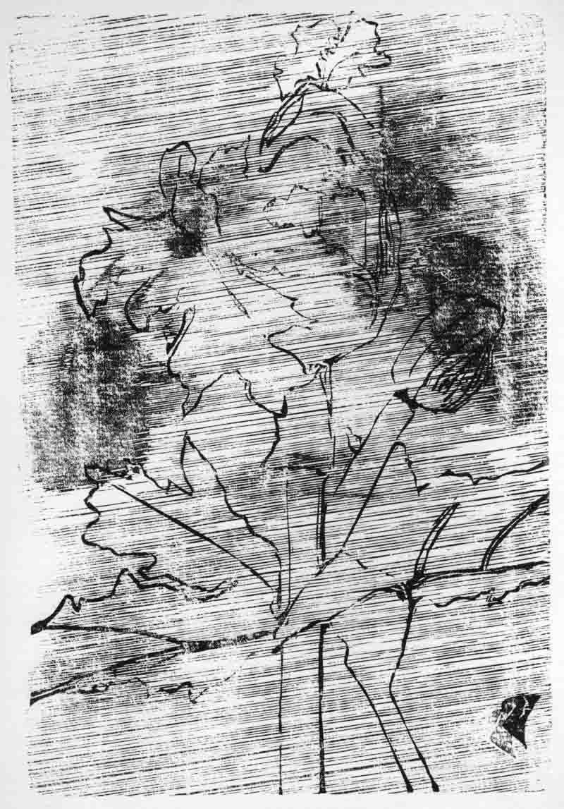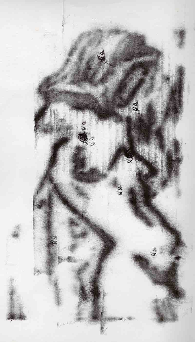 Voorhandig papier kan in zo’n geval ook papier zijn wat gewoon ergens rondslingert (ik ben een begenadigd chaoticus) en waar al iets op gedrukt is. En dan kan het drukken soms hele mooie toevallige resultaten of combinaties opleveren. Een embryo dat plotseling een tweelingbroertje of – zusje blijkt te hebben; een mistig beekdal dat opeens nog mistiger is geworden; of een model, dat op de achterkant van het papier opeens een heel sprekende tekening wordt, die alleen nog een kwastje aquarelverf nodig heeft om echt iets te worden. Wel weer jammer dat die laatsten op gewoon goedkoop krantenpapier zijn gedrukt. Niet echt voor de eeuwigheid, ben ik bang. Maar ach, wat is eeuwigheid; we leven nu. En nu zijn het best mooie plaatjes. Toch?